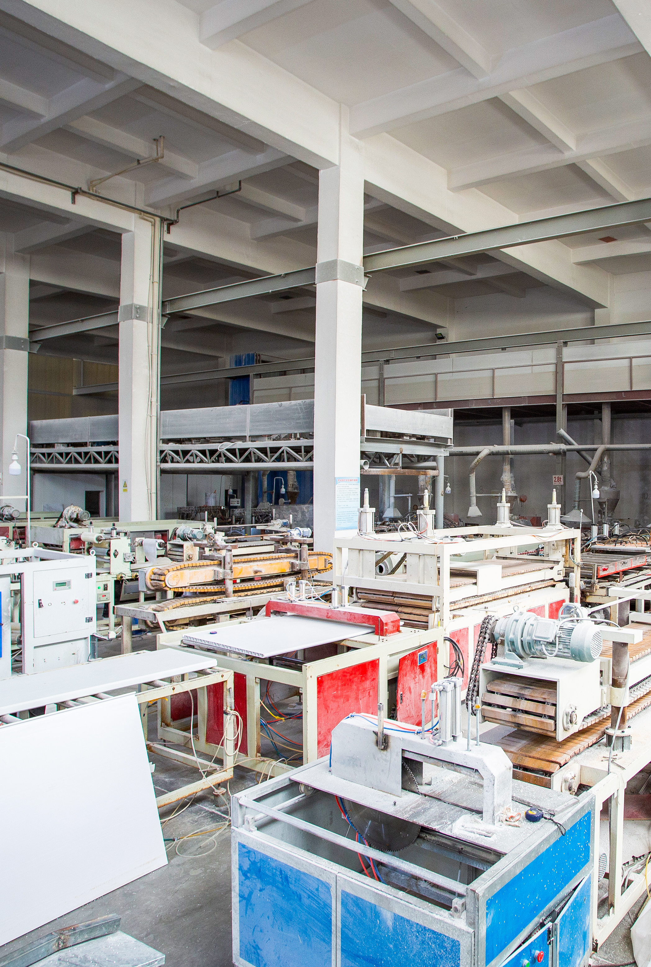 Clúdaíonn an mhonarcha achar de 6,000 méadar cearnach agus tá sé feistithe le 32 líne easbhrúite go hiomlán uathoibríoch (lena n-áirítear 10 easbhrúiteoir de 65, 2 easbhrúiteoir 80 agus 20 easbhrúiteoir de 51). (lena n-áirítear 10 65 easbhrúiteoir, 2 80 easbhrúiteoir agus 20 51 easbhrúiteoir), ar féidir leo freastal ar tháirgeadh leanúnach éifeachtach PVC, WPC agus ábhair eile. Ag brath ar an teaglaim de mhúnlaí iolracha, tuigeann sé an oibríocht chomhtháite ó mheascadh, easbhrú, fuarú agus múnlú go gearradh.